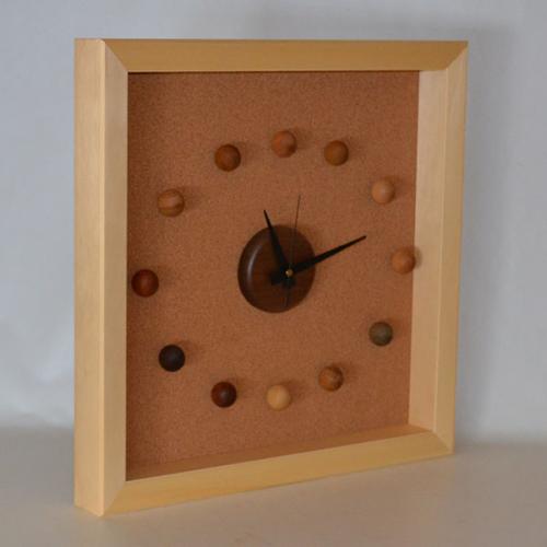12種類の異なる天然木木球を自分で組み立てるインテリア性の高い時計です。