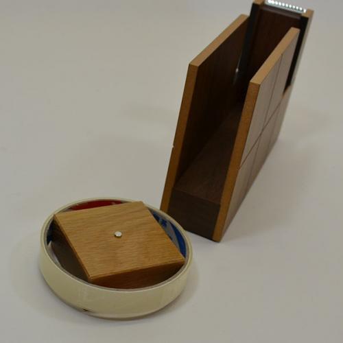 木工クラフトの聖地旭川の職人が作る精巧なテープカッターです。ネオジウム磁石付きのホイール軸で取り外しも簡単です。デスクの上をクールに決めるなら、コレです。