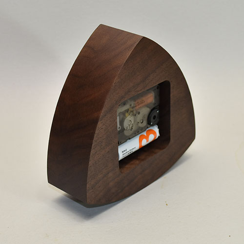 厚みのあるウォールナット材からの削り出し。小さくても贅沢な木の重量感を感じさせてくれる時計です。
