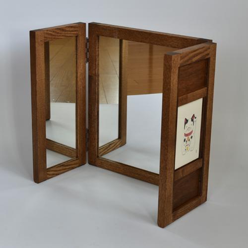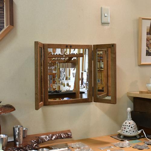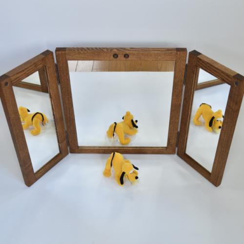 壁掛けの三面鏡です。自立しますのでデスクトップでも使えます。