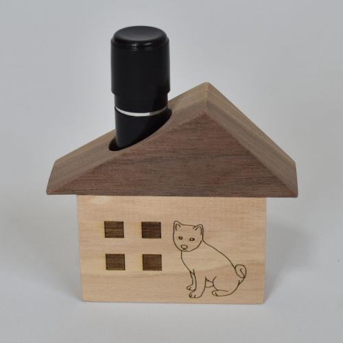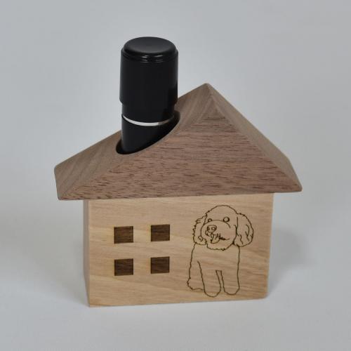 玄関先にあると便利な印鑑スタンドです。ネオジウムマグ付で鋼製玄関ドア等にお取り付けできます。色の違う白木とウォールナット材を使いアクセントを付けています。印鑑を煙突に見立て、ご主人様のお帰りを家で待つ「お帰りワンコ」です。犬種はダックス・柴・コーギー・パグ・プードル・チワワ・ポメラニアン・ピンシャーからお選び頂けます。日本の家具職人が手仕事で製作しております。ドアスコープカバーとしても機能します。