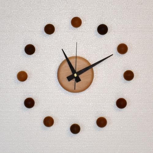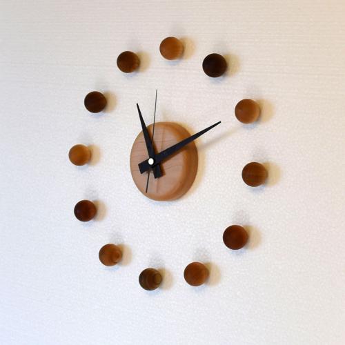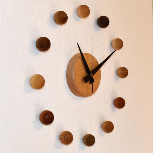 12種類の異なる天然木木球を自分で組み立てるインテリア性の高い時計です。